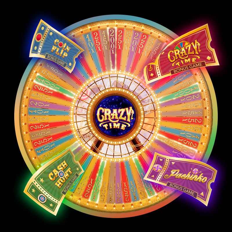 - Sectores de bonus: Coin Flip, Cash Hunt, Pachinko y Crazy Time.